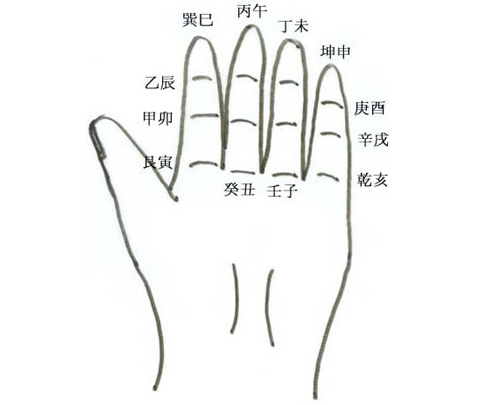 절(絶.胞) 태(胎) 양(養) 생(生) 욕(浴) 대(帶) 관(官) 왕(旺) 쇠(衰) 병(病) 사(死) 묘(墓.葬) 용(龍) 및 수(水)의 좌선시 '금인수토사(金寅水土巳) 목신화해당(木申火骸當)하고' 용(龍) 및 수(水)의 우선시 '금묘수토오(金卯水土午) 목유화자기(木酉火子起)' 이다.